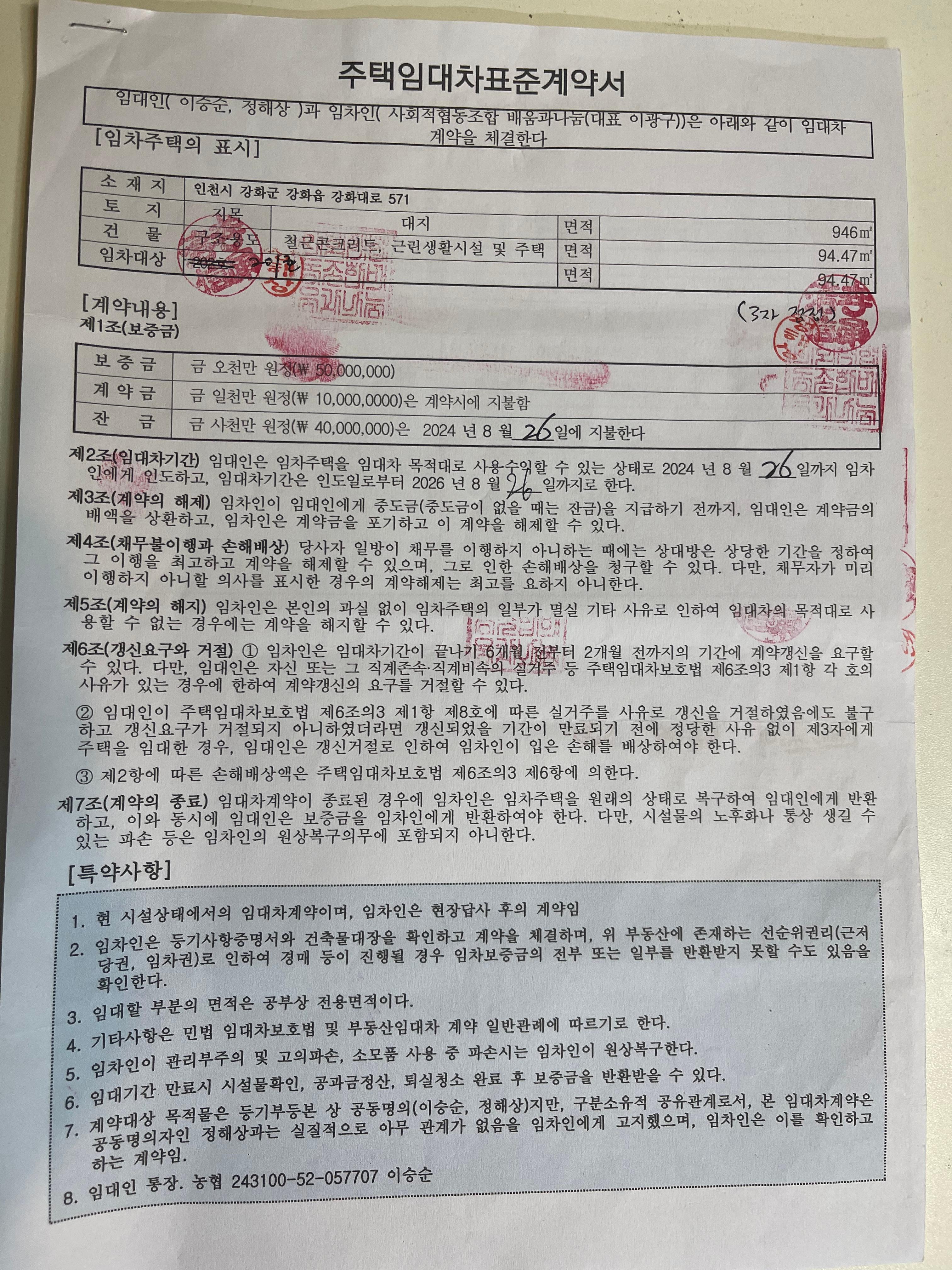 (국화리) 강화서로돌볼센터 임대차계약 (2024.08.26 ~ 2026.08.26)