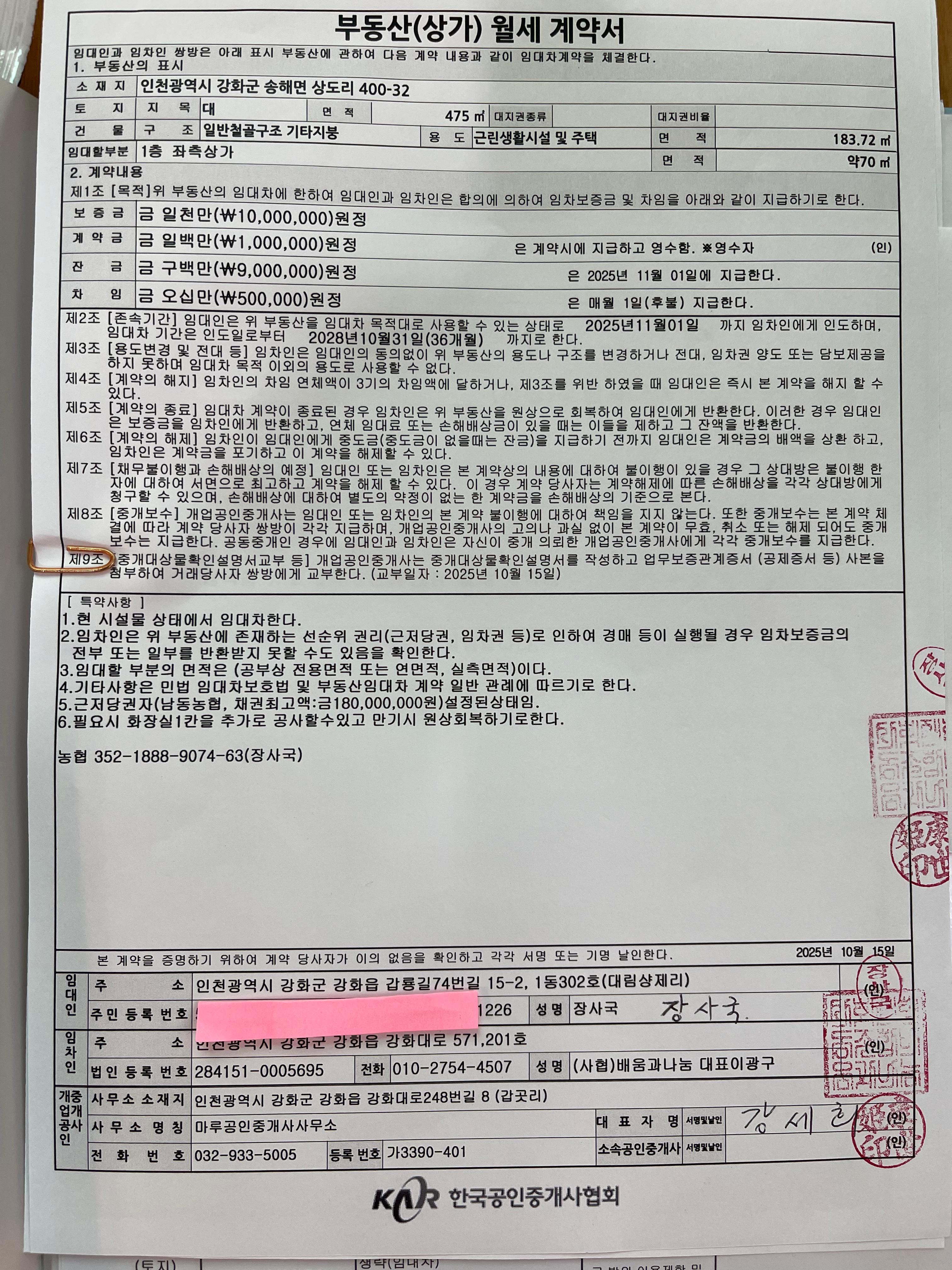 (호박골) 주간발달센터 임대차계약 (2025.11.01 ~ 2028.10.31)